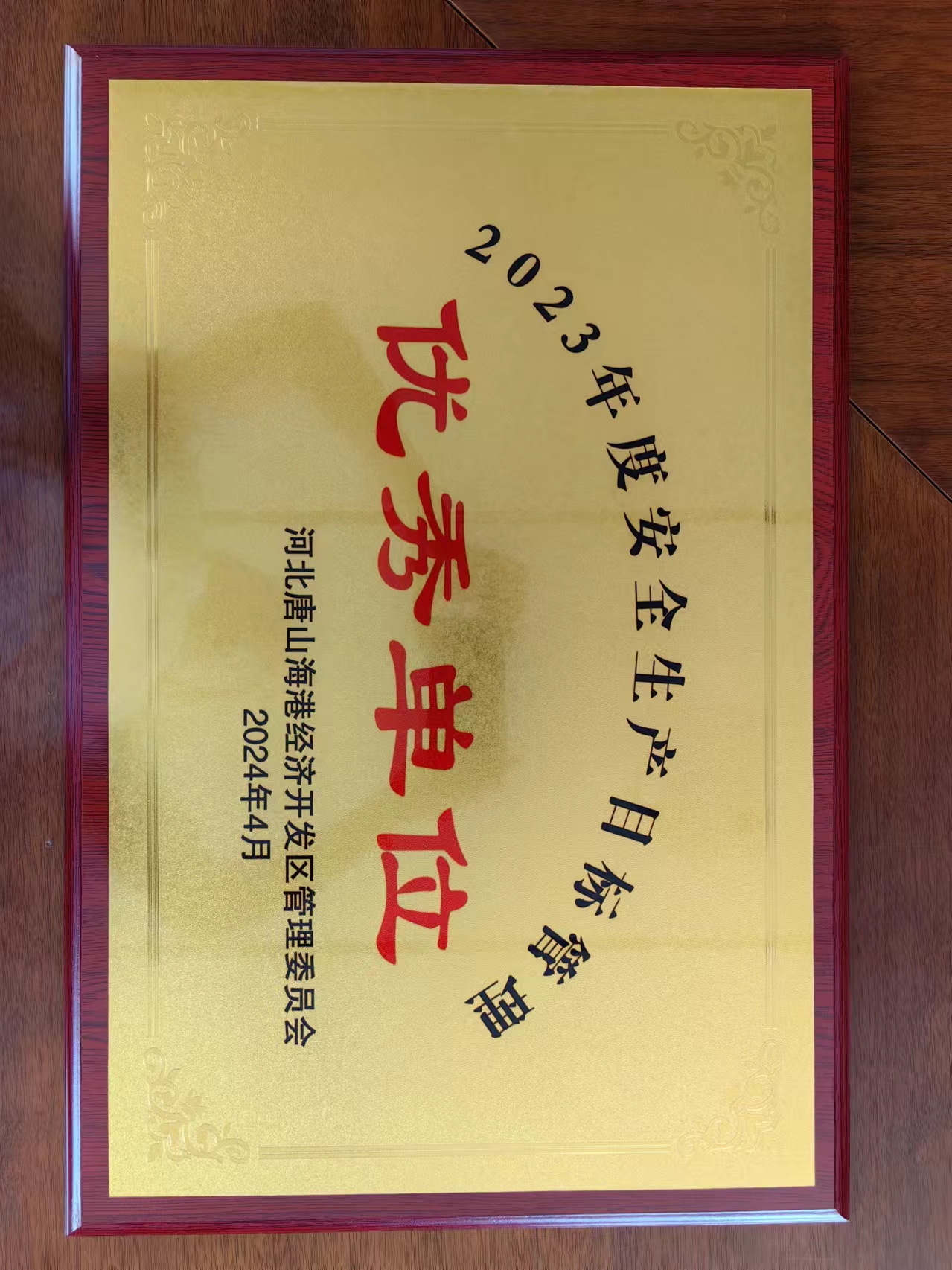 我司被海港經(jīng)濟(jì)開發(fā)區(qū)管理委員會(huì)授予“2023年度安全生產(chǎn)目標(biāo)管理”優(yōu)秀單位